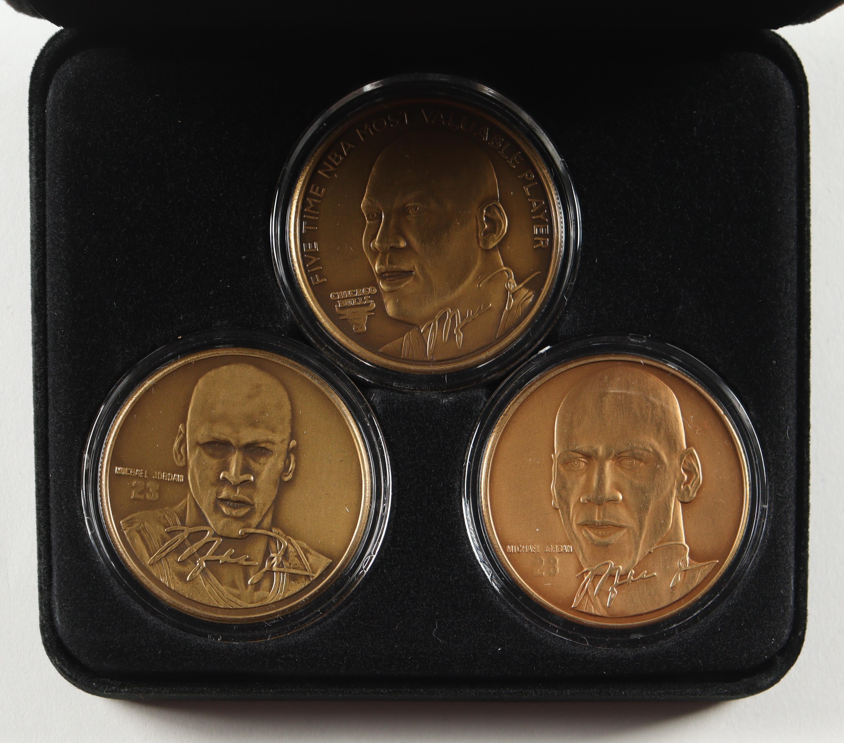 Set includes all (3) coins include Michael Jordan Chicago Bulls Coins are all serially numbered #2/5000.