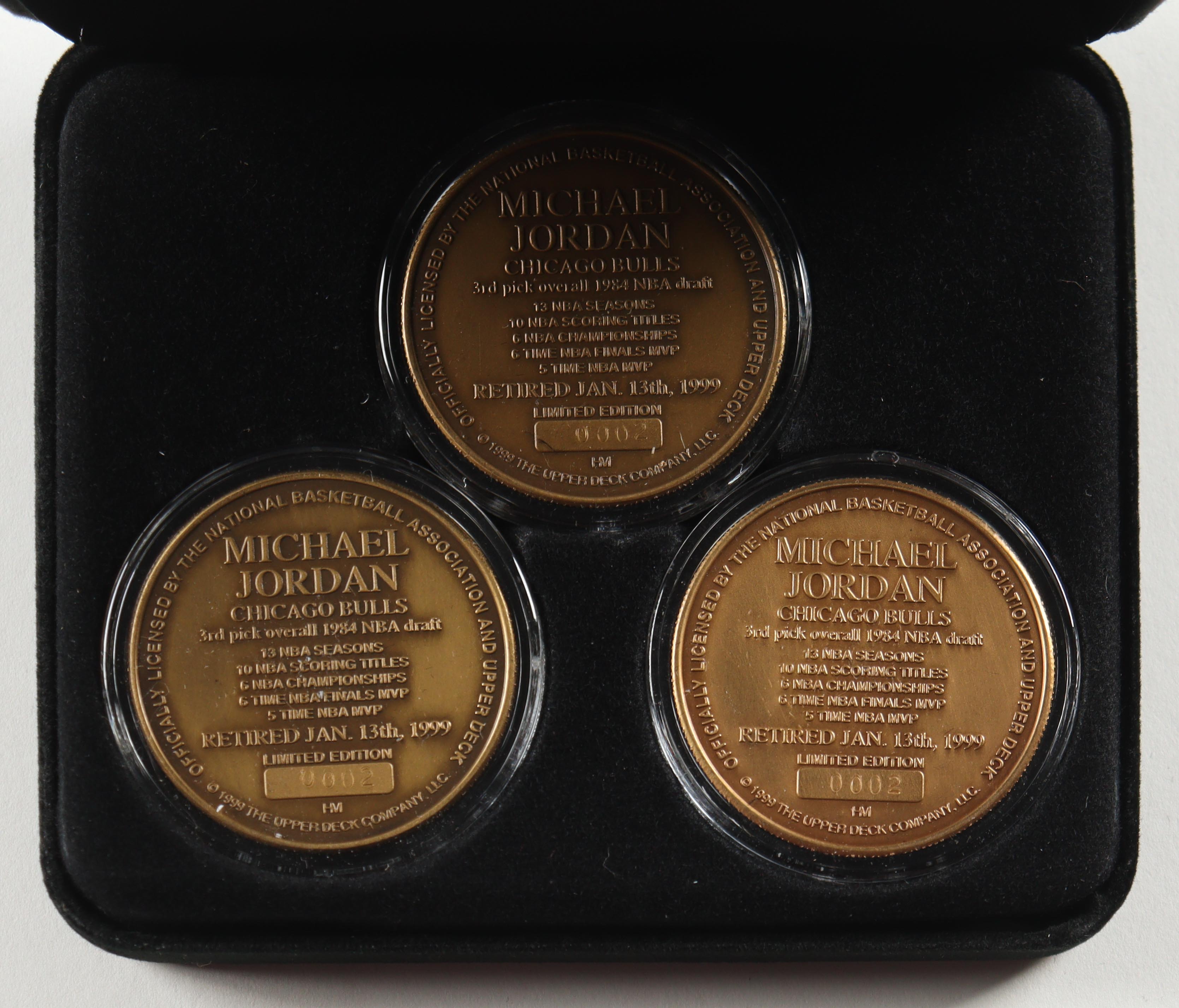 Set of (3) LE 1999 Michael Jordan Retirement Upper Deck Highland Mint Bronze Coins