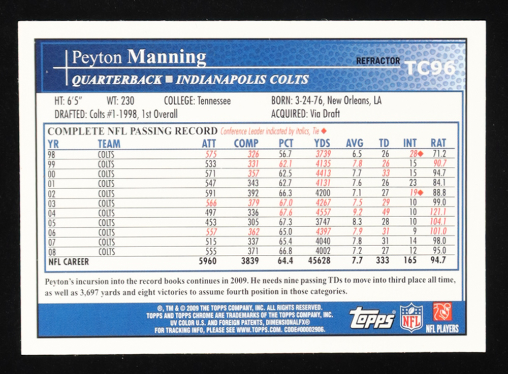 Peyton Manning 2009 Topps Chrome Refractors #TC96