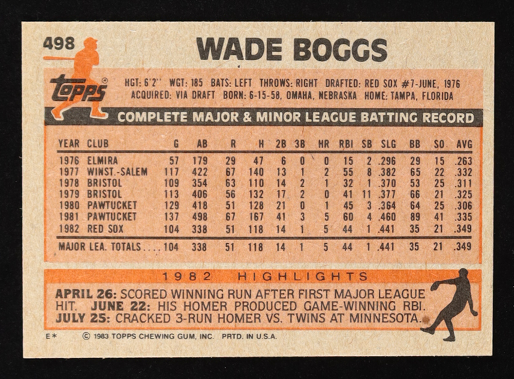 Wade Boggs 1983 Topps #498 RC