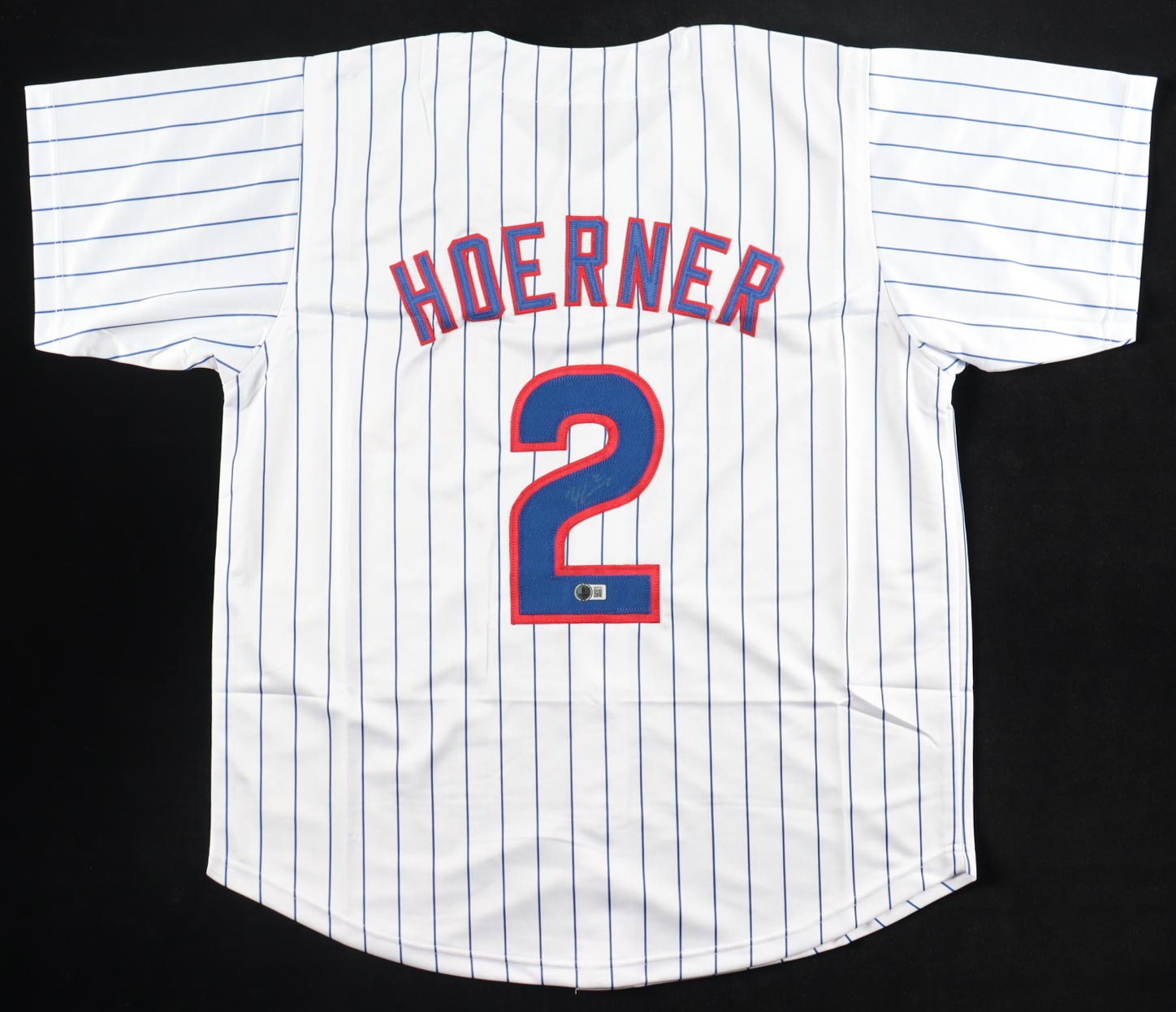 Custom jersey, everything is sewn on, size XL. Hand-signed by Nico Hoerner. Please note, the signature is faint.