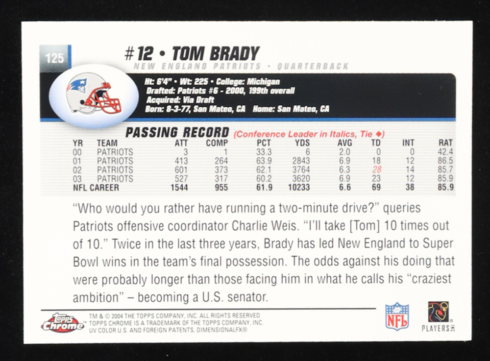 Please see photos for more details regarding the condition of the card (New England Patriots).