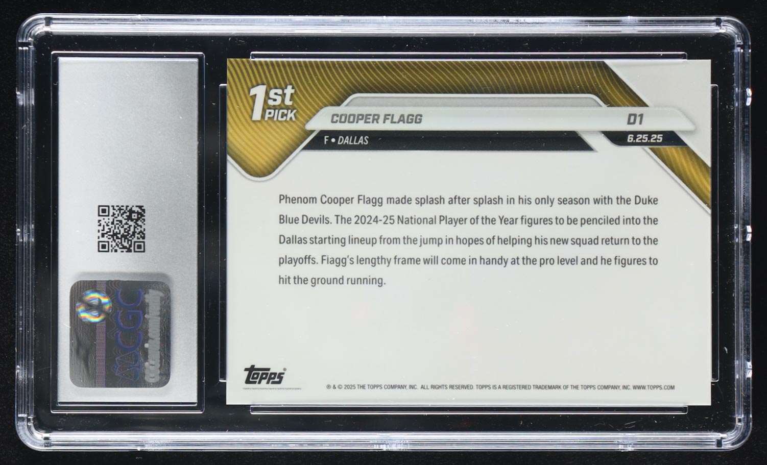 Cooper Flagg 2025-26 Topps Now #D1 RC (CGC 10)