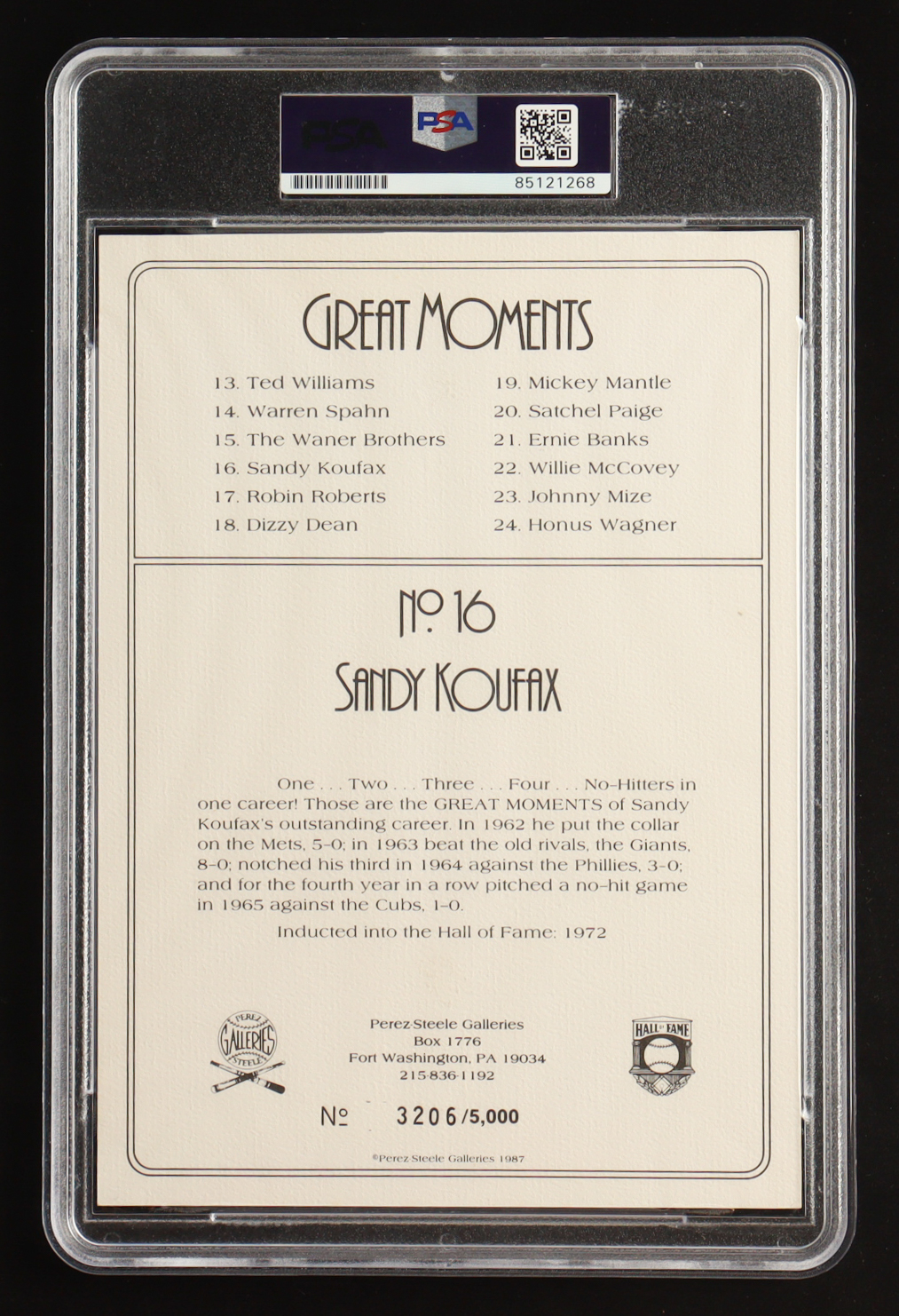 Sandy Koufax Signed LE 1987 Perez-Steele Great Moments #16 (PSA)