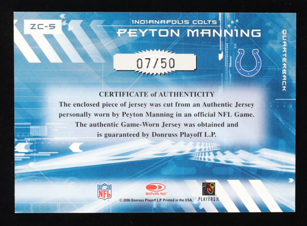 Peyton Manning 2006 Donruss Elite Zoning Commission Jerseys Prime #ZC5 #07/50