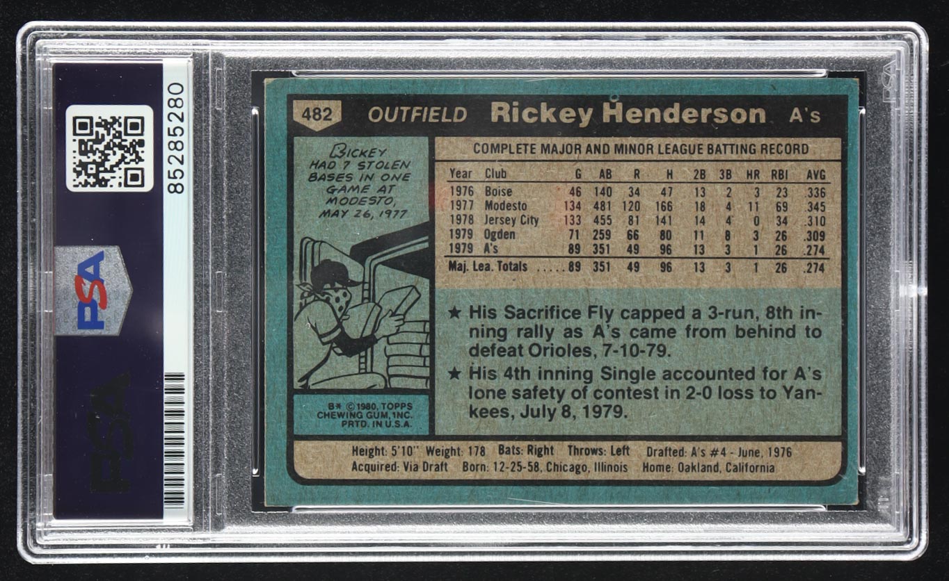 Rickey Henderson Signed 1980 Topps #482 RC (PSA)