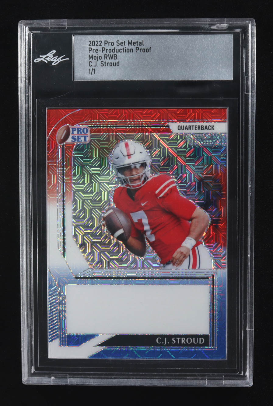 C.J. Stroud 2022 Pro Set Metal Pre-Production Proof Red White Blue Mojo #NNO #1/1 RC (Leaf)
