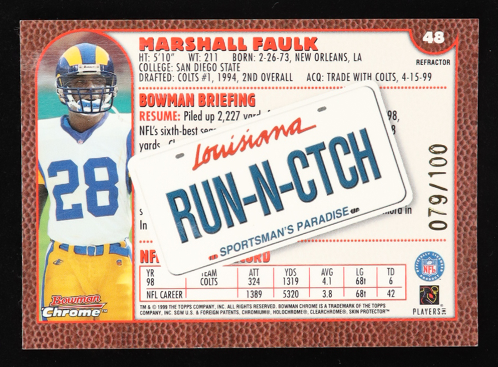 Marshall Faulk 1999 Bowman Chrome Interstate Refractors #48 #079/100