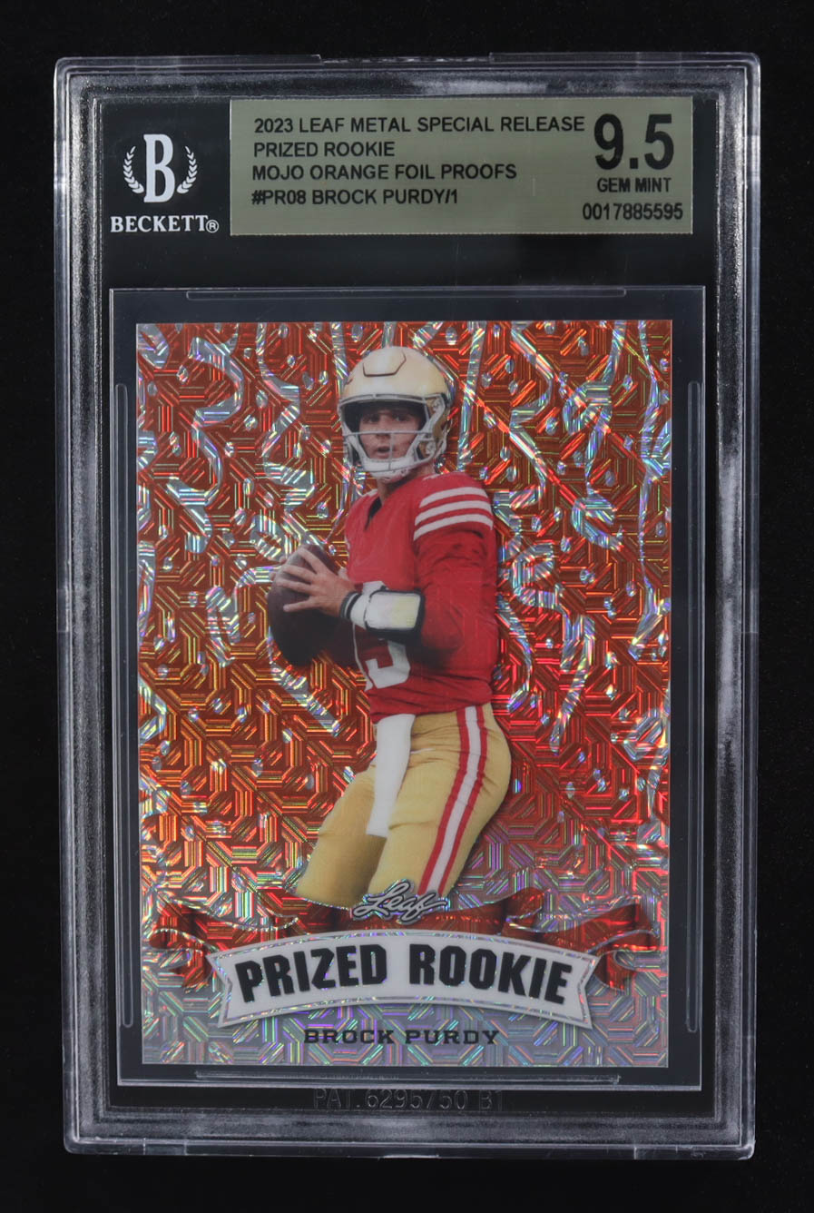 Brock Purdy 2023 Leaf Metal Special Release Prized Rookie Mojo Orange Foil Proofs #PR08 #1/1 (BGS 9.5)