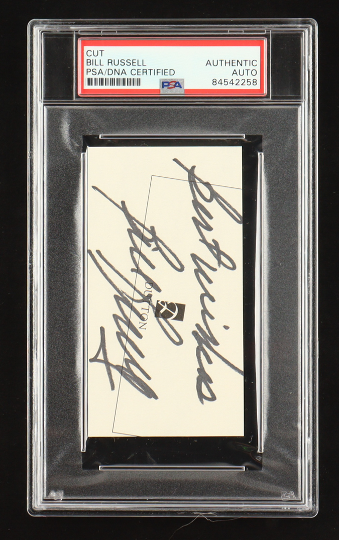Cut measures approximately 2.25" x 4" in size has been hand-signed and inscribed by Bill Russell (D. 2022, Boston Celtics, HOF).