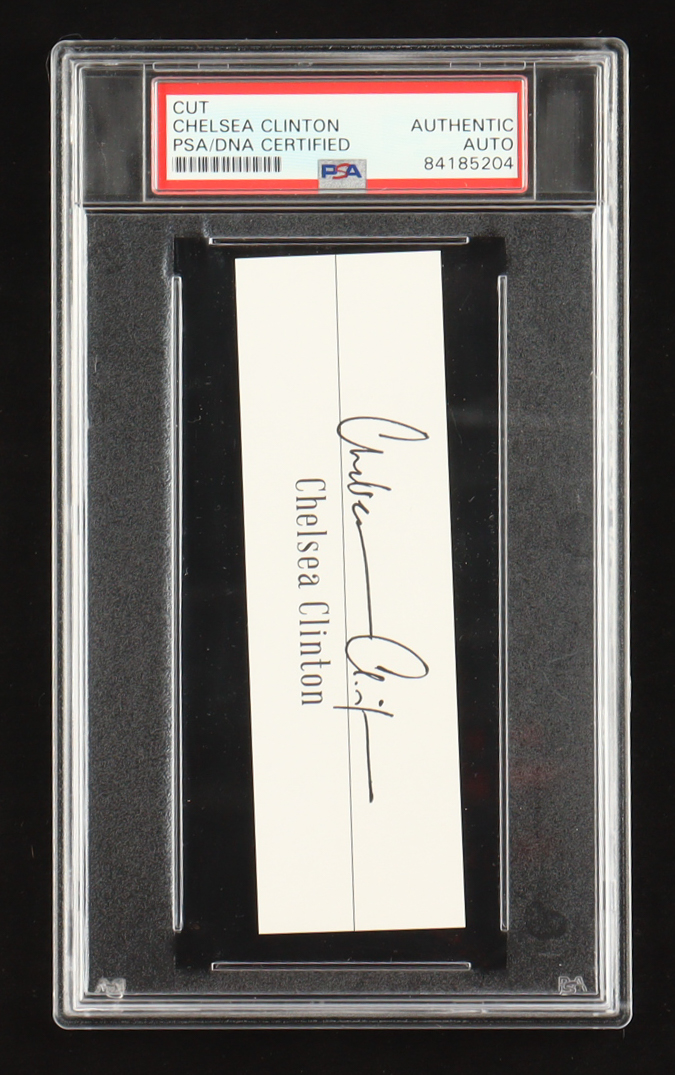 Cut measures approximately 1.5" x 5" in size has been hand-signed by Chelsea Clinton.
