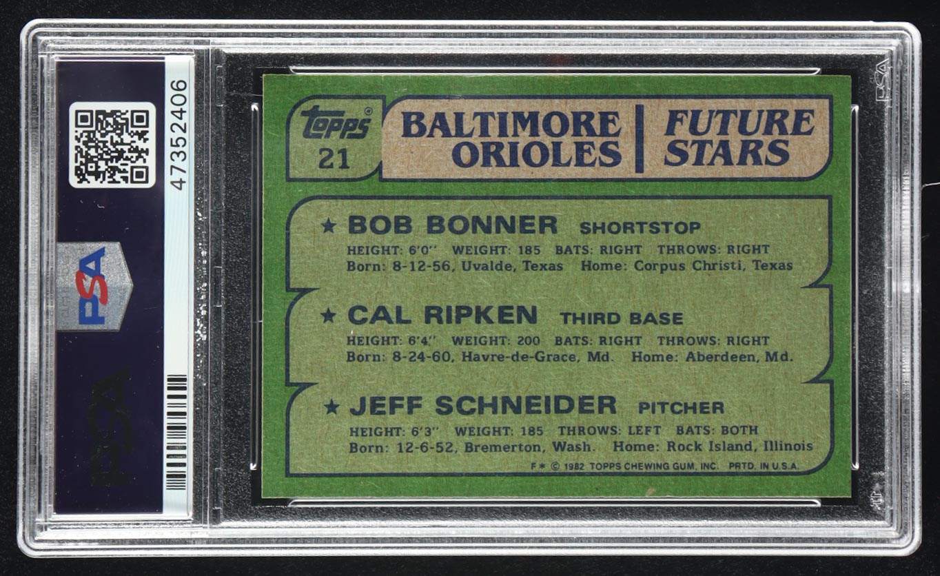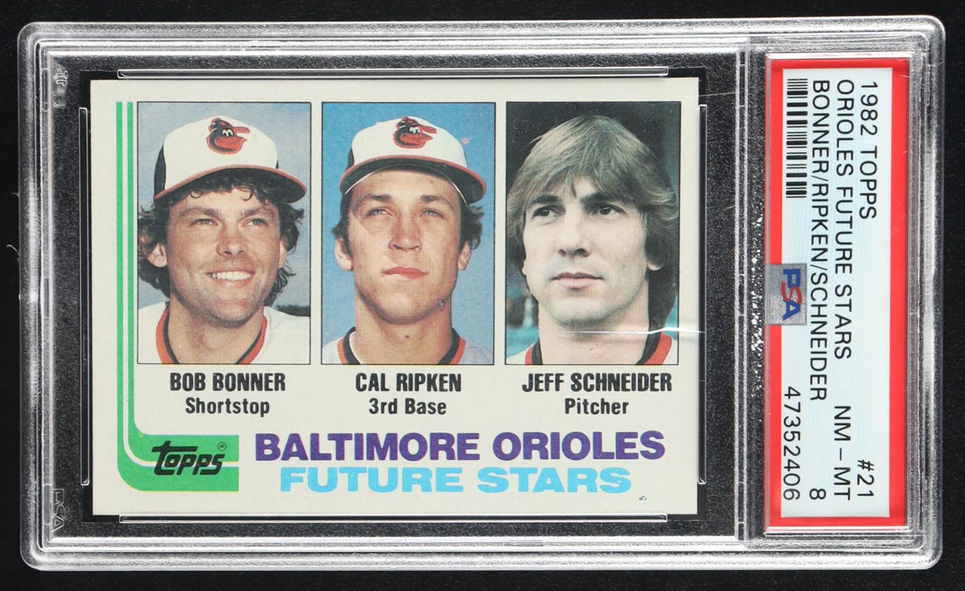 Bob Bonner / Cal Ripken Jr. / Jeff Schneider 1982 Topps #21 RC (PSA 8)