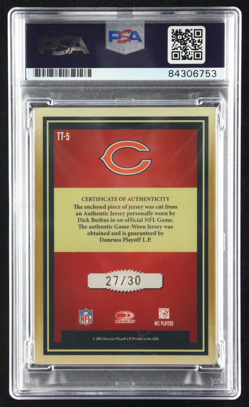 Dick Butkus Signed 2007 Donruss Elite Throwback Threads Prime #5 #27/30 Inscribed "NFL Top 100" (PSA | Auto Grade 10)