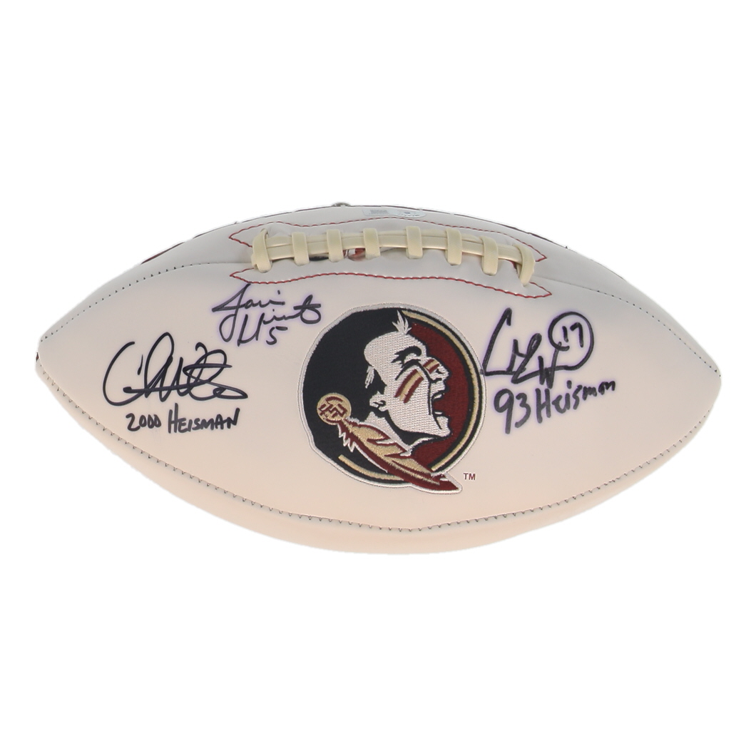 Rawlings Florida State Seminoles Logo full-size football. Hand-signed by Charlie Ward, Jameis Winston, and Chris Weinke.