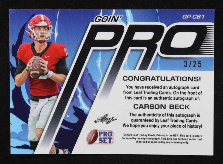 Carson Beck 2023 Leaf Pro Set Goin' Pro Silver Autographs #GPCB1 #3/25 RC