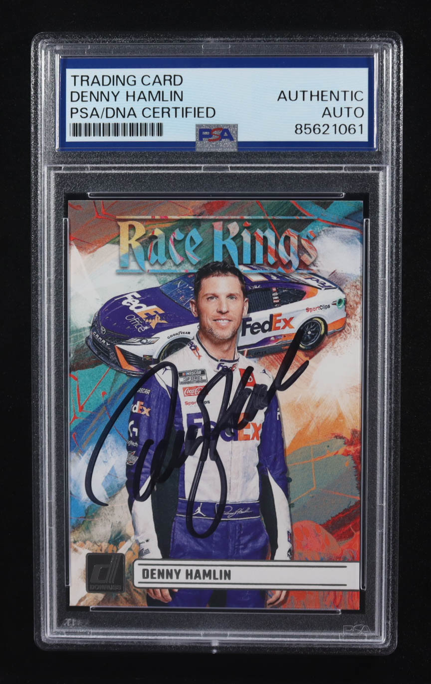 Denny Hamlin Signed 2024 Panini Race Kings Donruss Racing #199 (PSA)