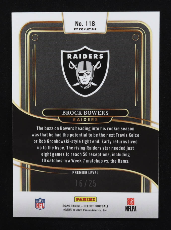 Brock Bowers 2024 Select Prizm Blue Disco #118 RC #16/25