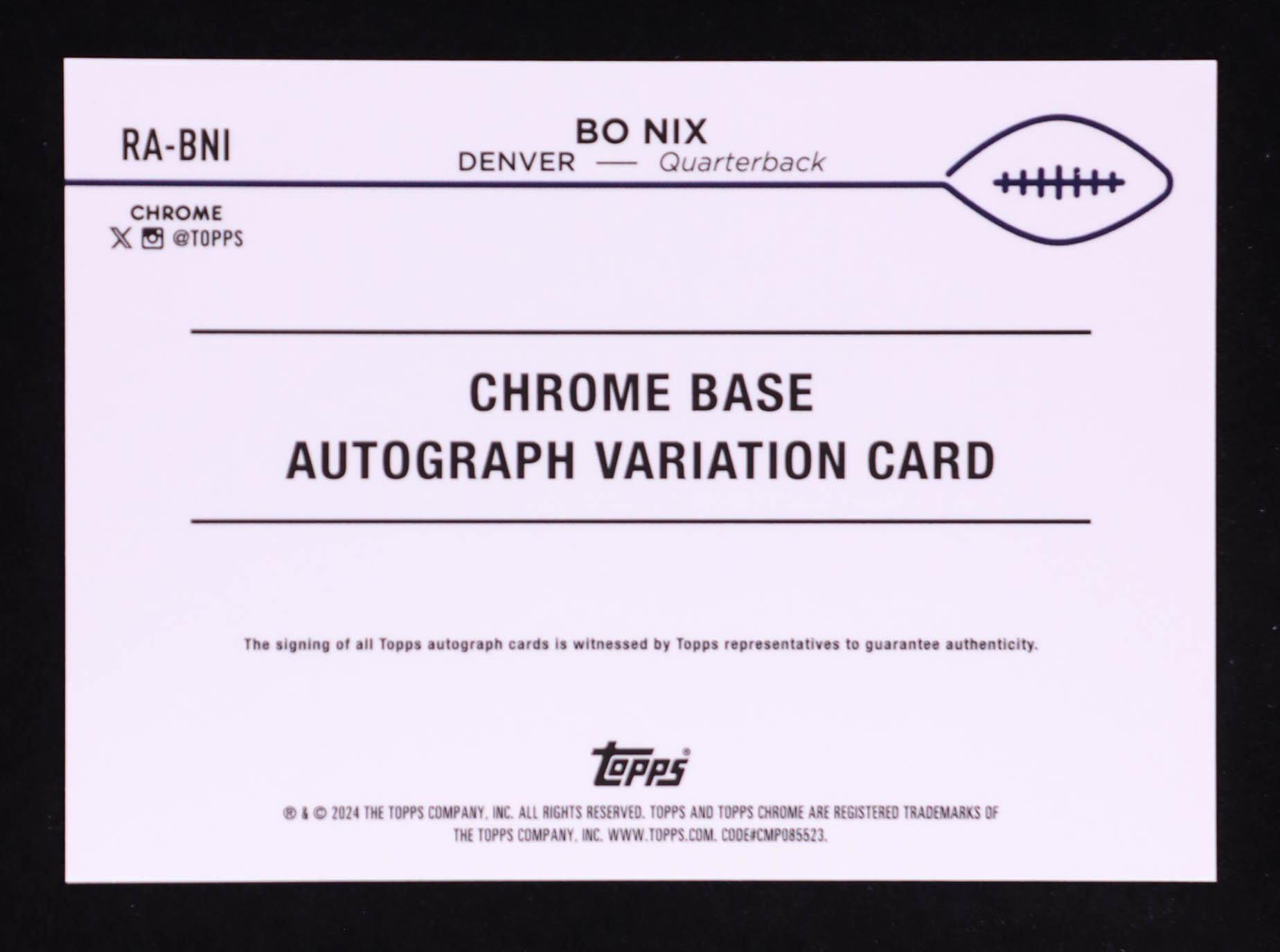 Bo Nix 2024 Topps Chrome Rookie Autographs #RABNI RC