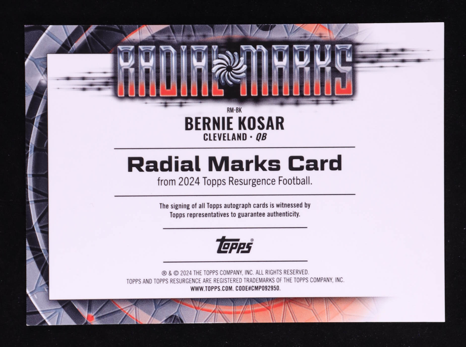 Bernie Kosar 2024 Topps Resurgence Radial Marks Autographs Blue Surge #RMBK #51/99