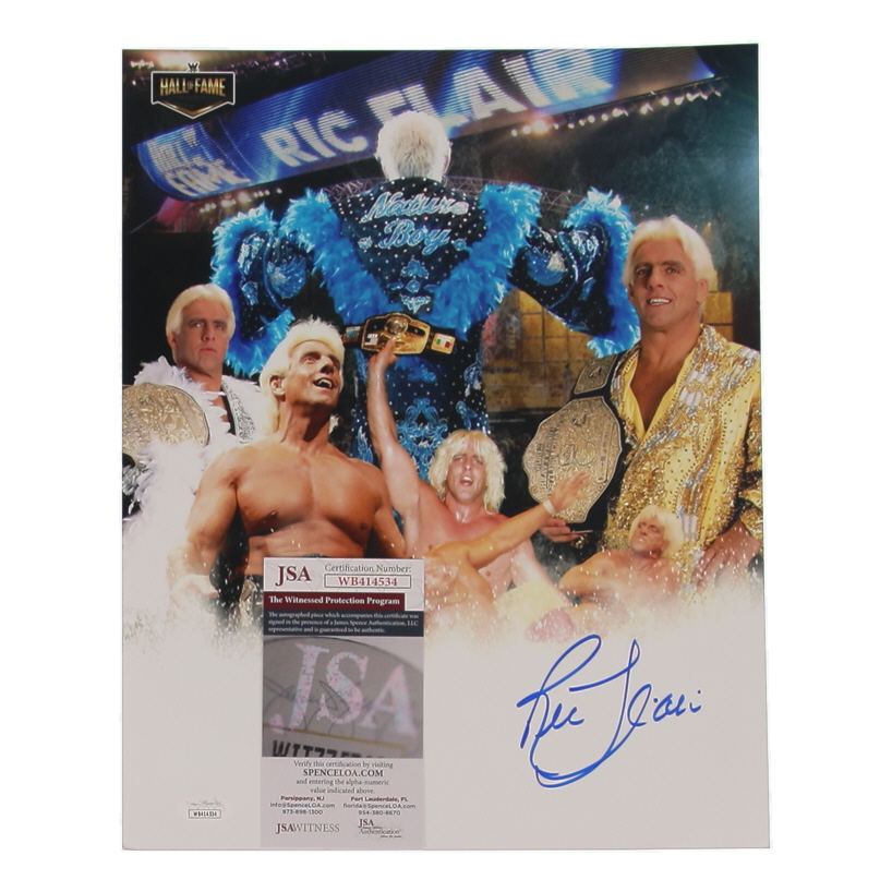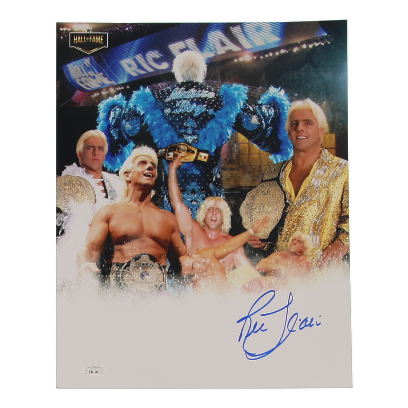 Photo measures approximately 11" x 14" in size. Hand-signed by Ric Flair (HOF).
