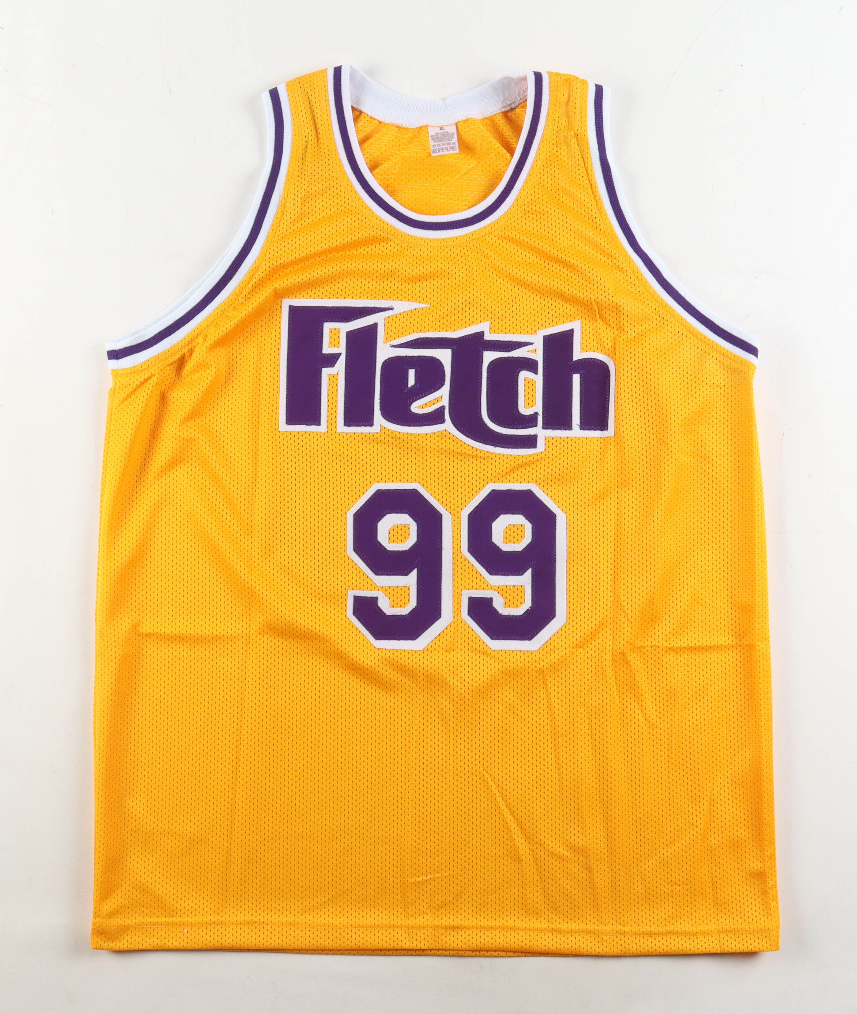 Custom jersey. Everything is sewn on, size XL. Hand-signed by Chevy Chase (Irwin M. Fletcher).