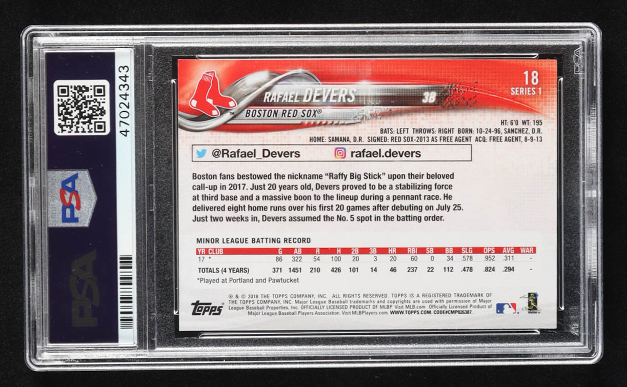 Rafael Devers 2018 Topps #18 RC (PSA 10)
