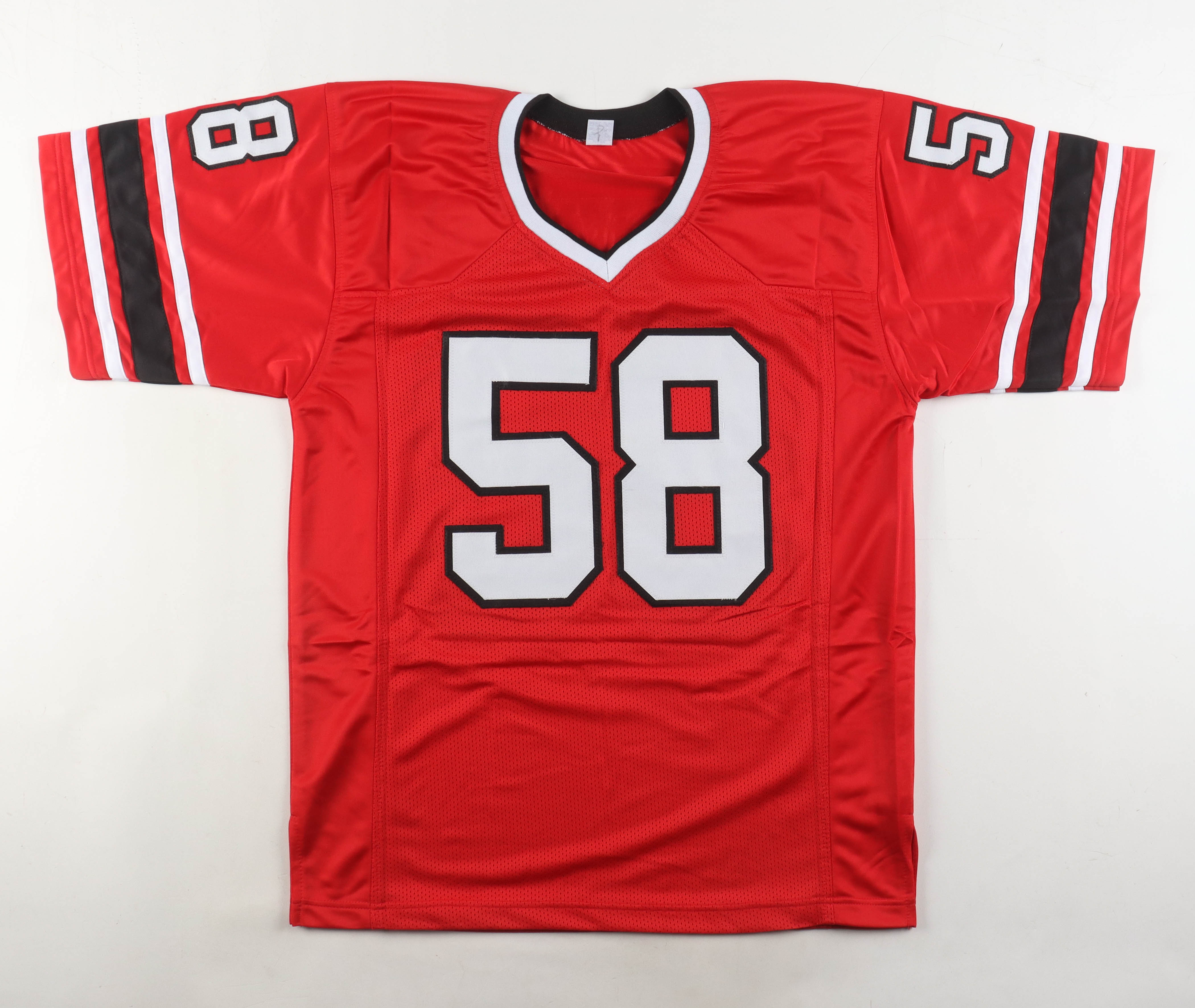 Custom jersey with everything sewn on, size XL. Hand-signed and inscribed by Jessie Tuggle.