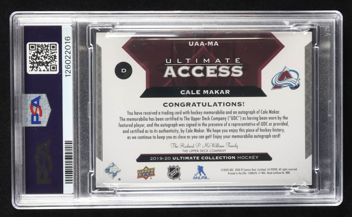 Cale Makar 2019-20 Ultimate Collection Ultimate Access Jersey Autographs #UAAMA #074/135 RC (PSA 7)