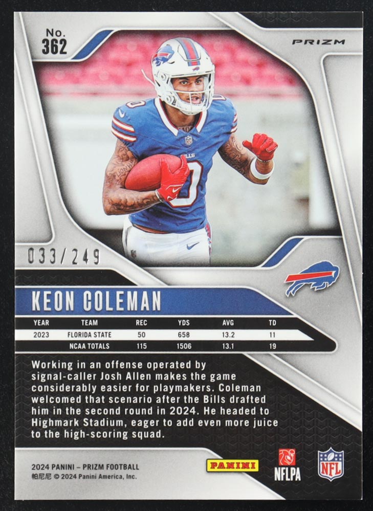 Keon Coleman 2024 Panini Prizm Orange Prizms #362 RC #33/249