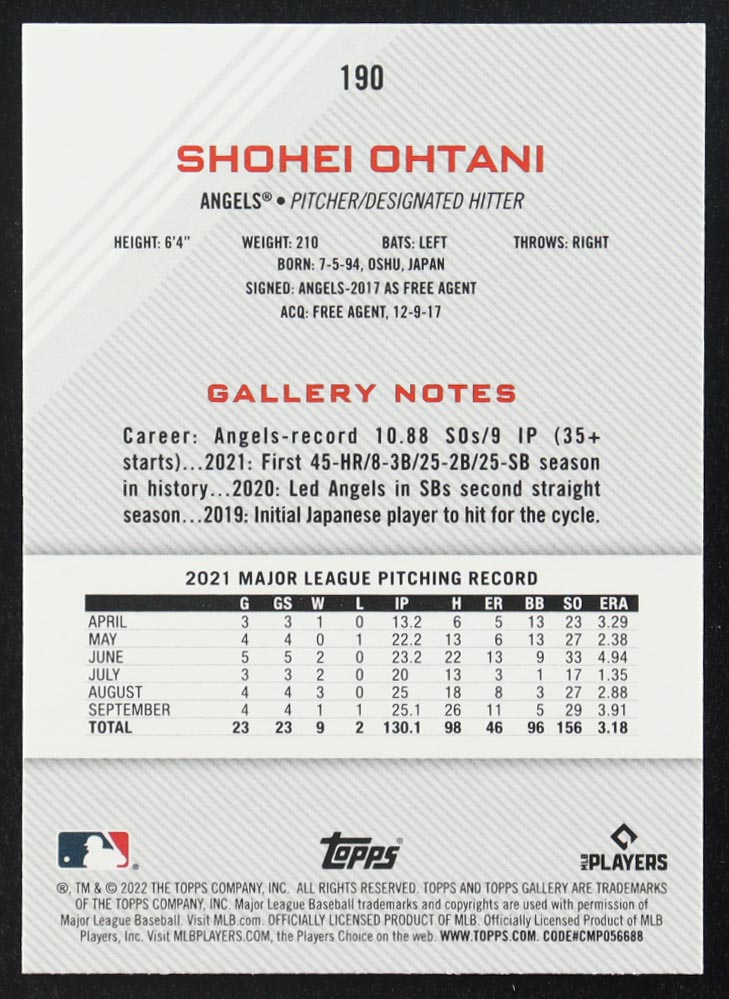Shohei Ohtani 2022 Topps Gallery #190