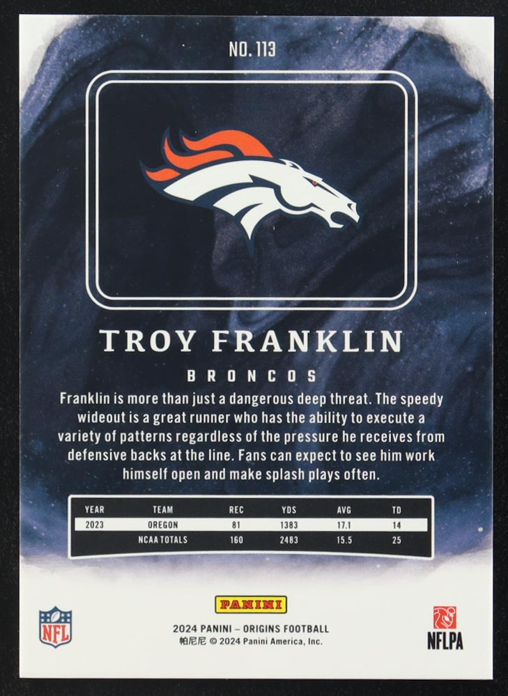 Troy Franklin 2024 Panini Origins Orange #113 RC #33/125
