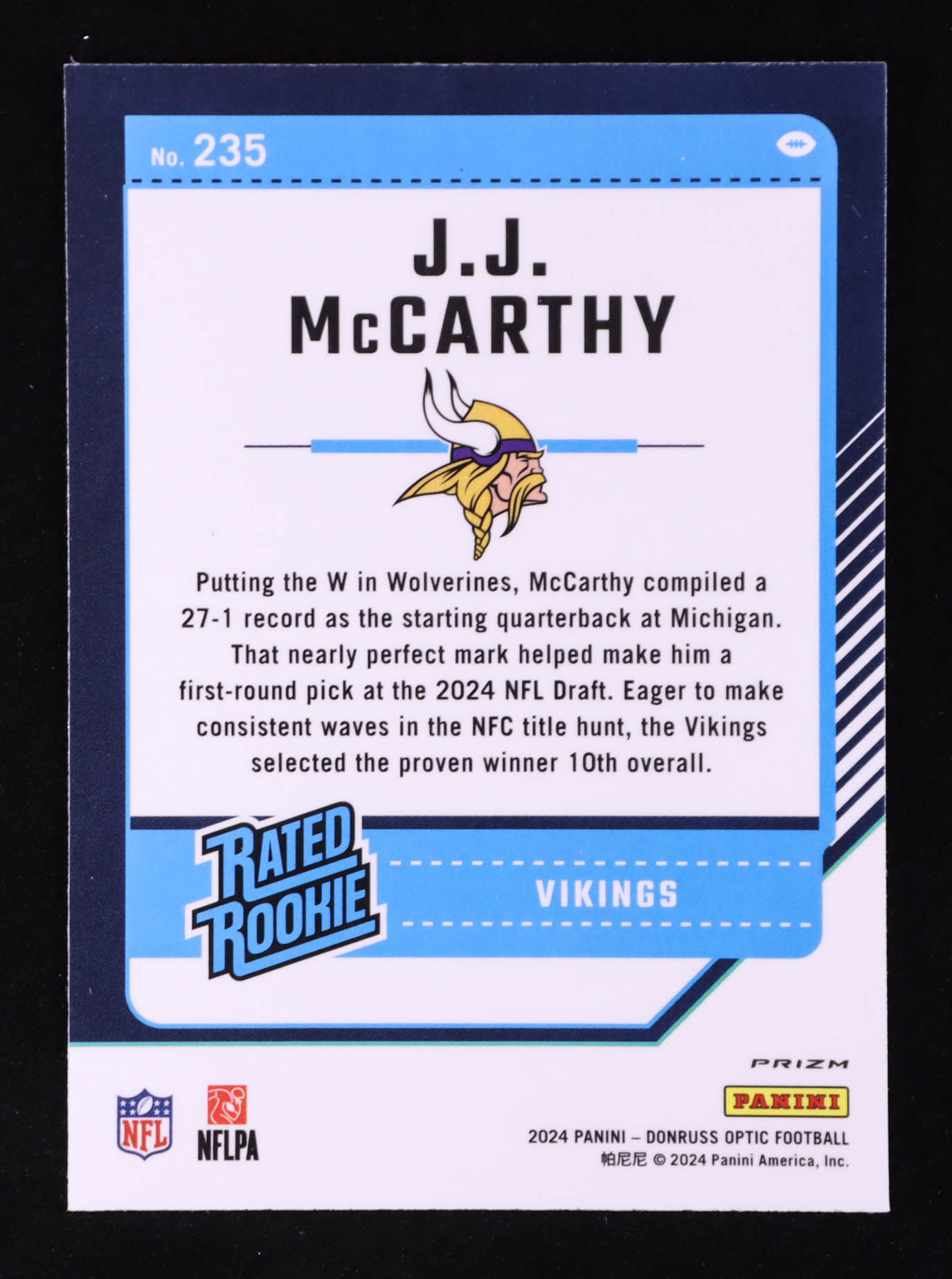 JJ McCarthy 2024 Donruss Optic Blue Hyper #235 RR RC