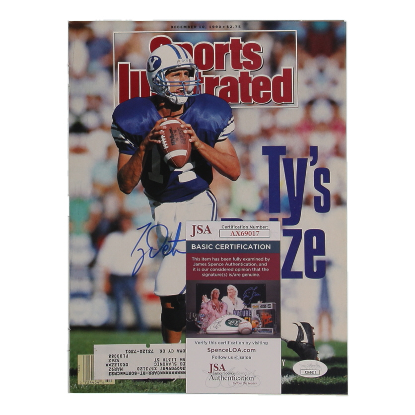 December 10th, 1990 Issue of Sports Illustrated Magazine cover has been hand-signed on the front cover by Ty Detmer (BYU Cougars). Please refer to photo for more details.