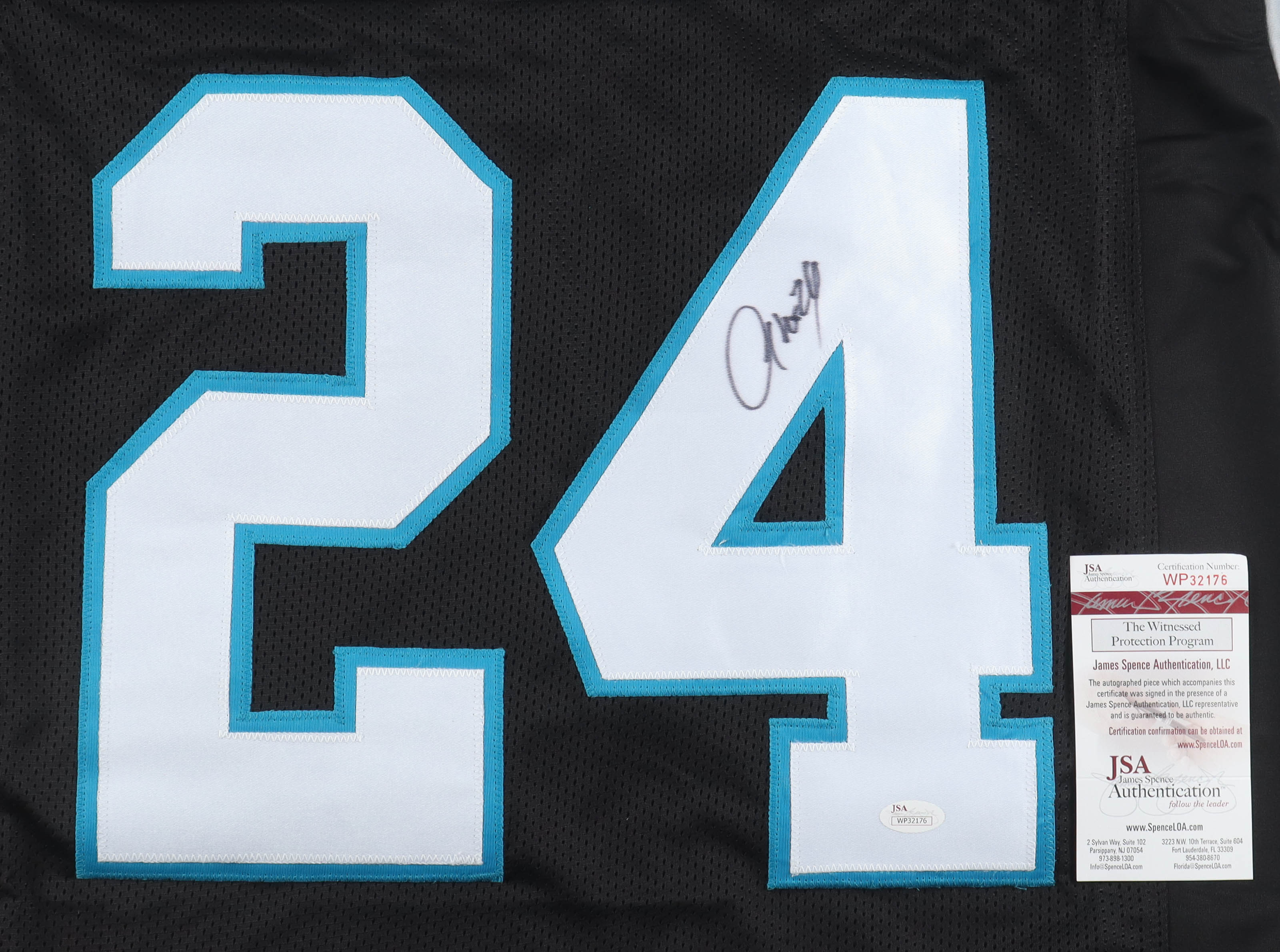 Custom jersey with everything sewn on, size XL. Hand-signed by Josh Norman.