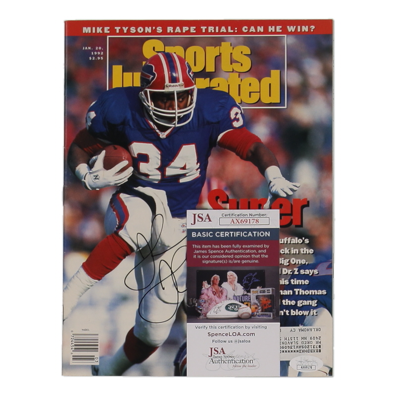 January 20th, 1992 Issue of Sports Illustrated Magazine has been hand-signed on the front cover by Thurman Thomas (Buffalo Bills, HOF). Please refer to photos for more details.