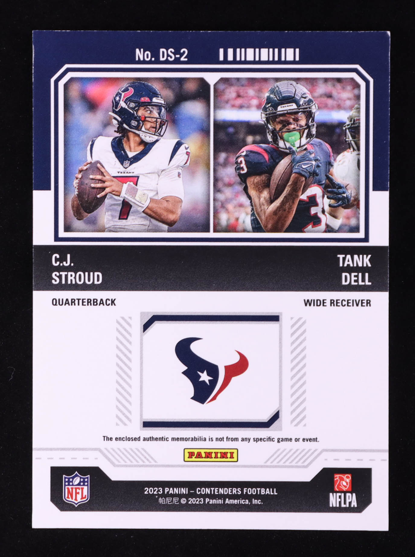CJ Stroud / Tank Dell 2023 Panini Contenders Rookie Ticket Dual Swatches #2 RC