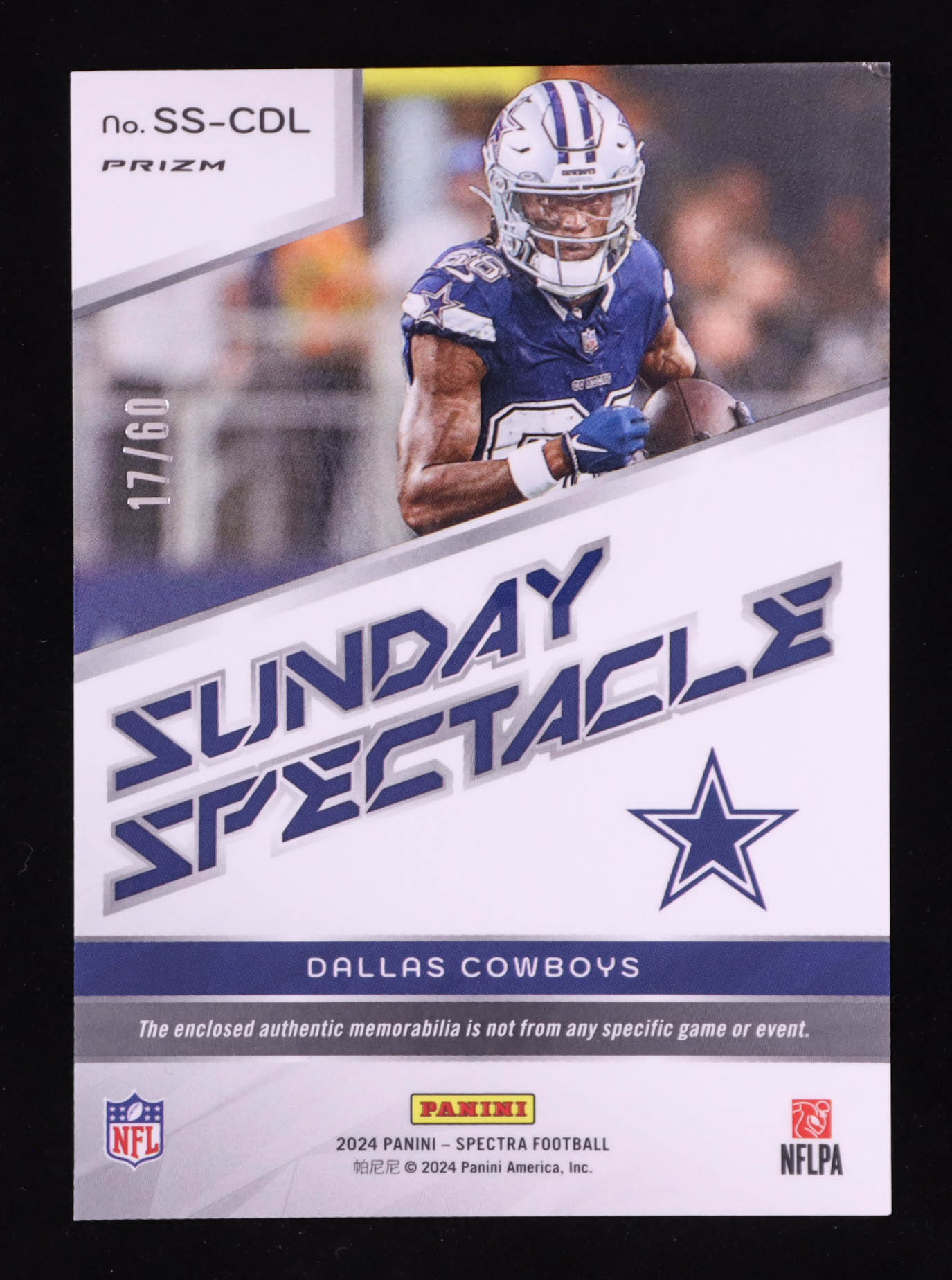 CeeDee Lamb 2024 Panini Spectra Sunday Spectacle Materials Neon Blue #24 #17/60