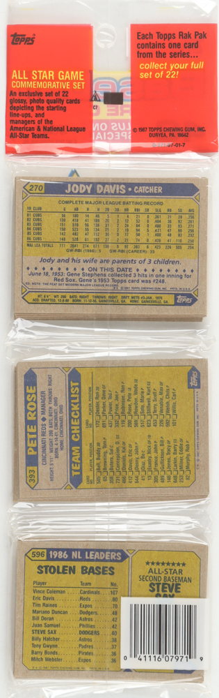 1987 Topps Baseball Picture Cards Rack Pack with (49) Cards
