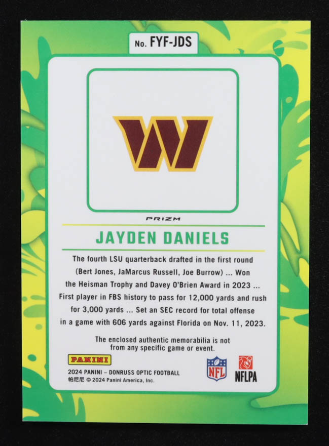 Jayden Daniels 2024 Donruss Optic First Year Fresh Jerseys Blue Hyper #17 RC