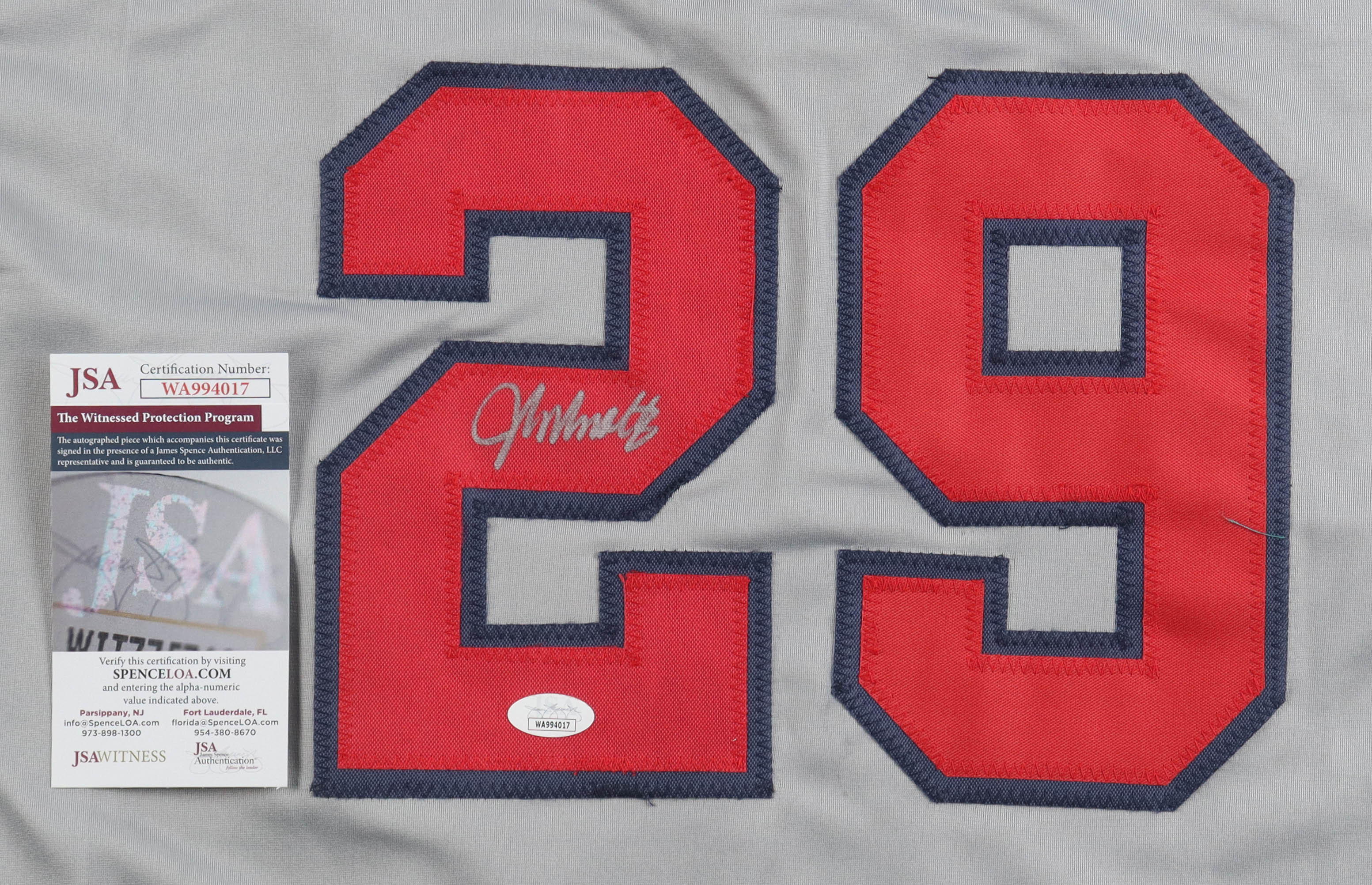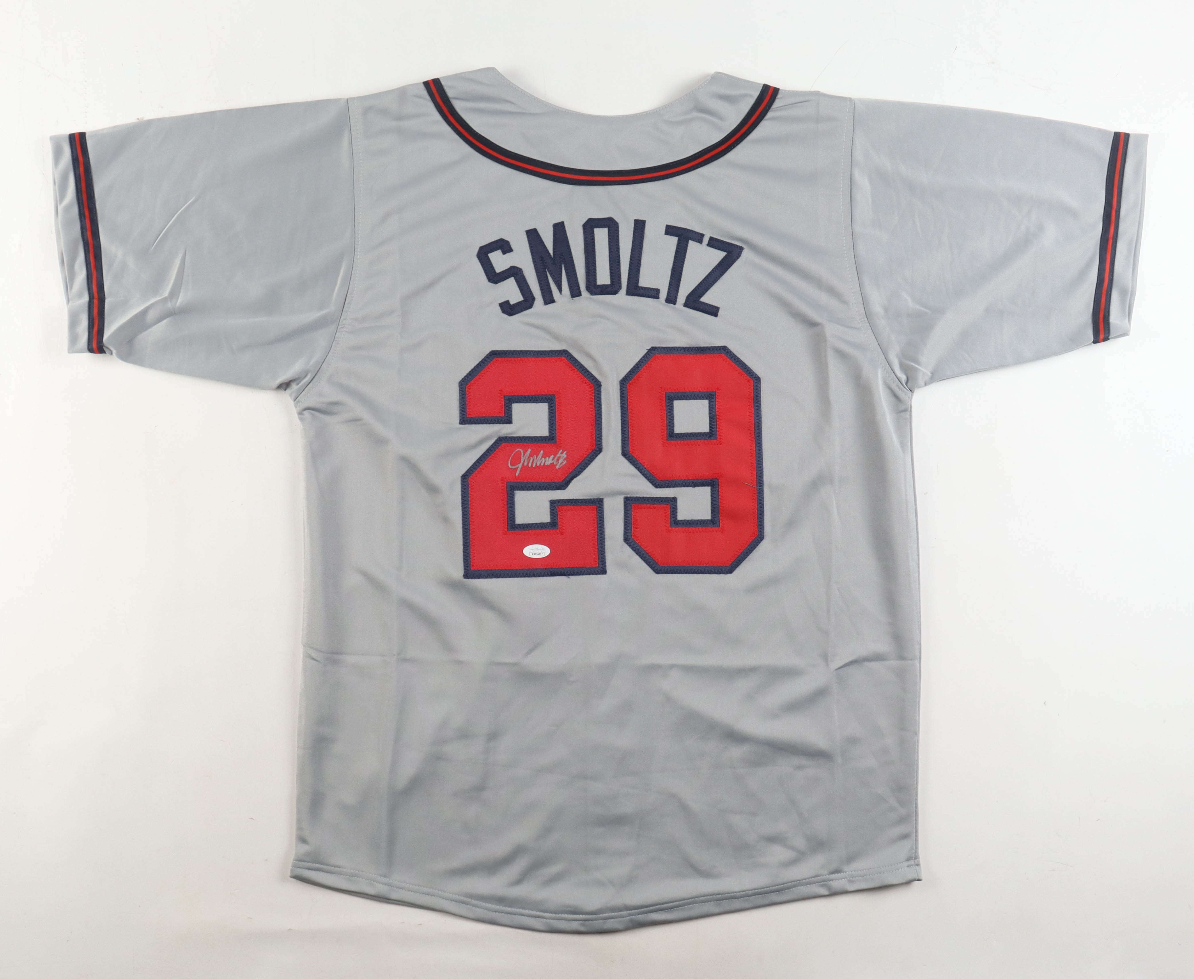 Custom jersey with everything sewn on, size XL. Hand-signed by John Smoltz (HOF).