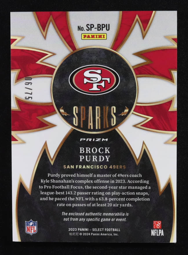 Brock Purdy 2023 Select Sparks Materials Prizm White #51 #6/75