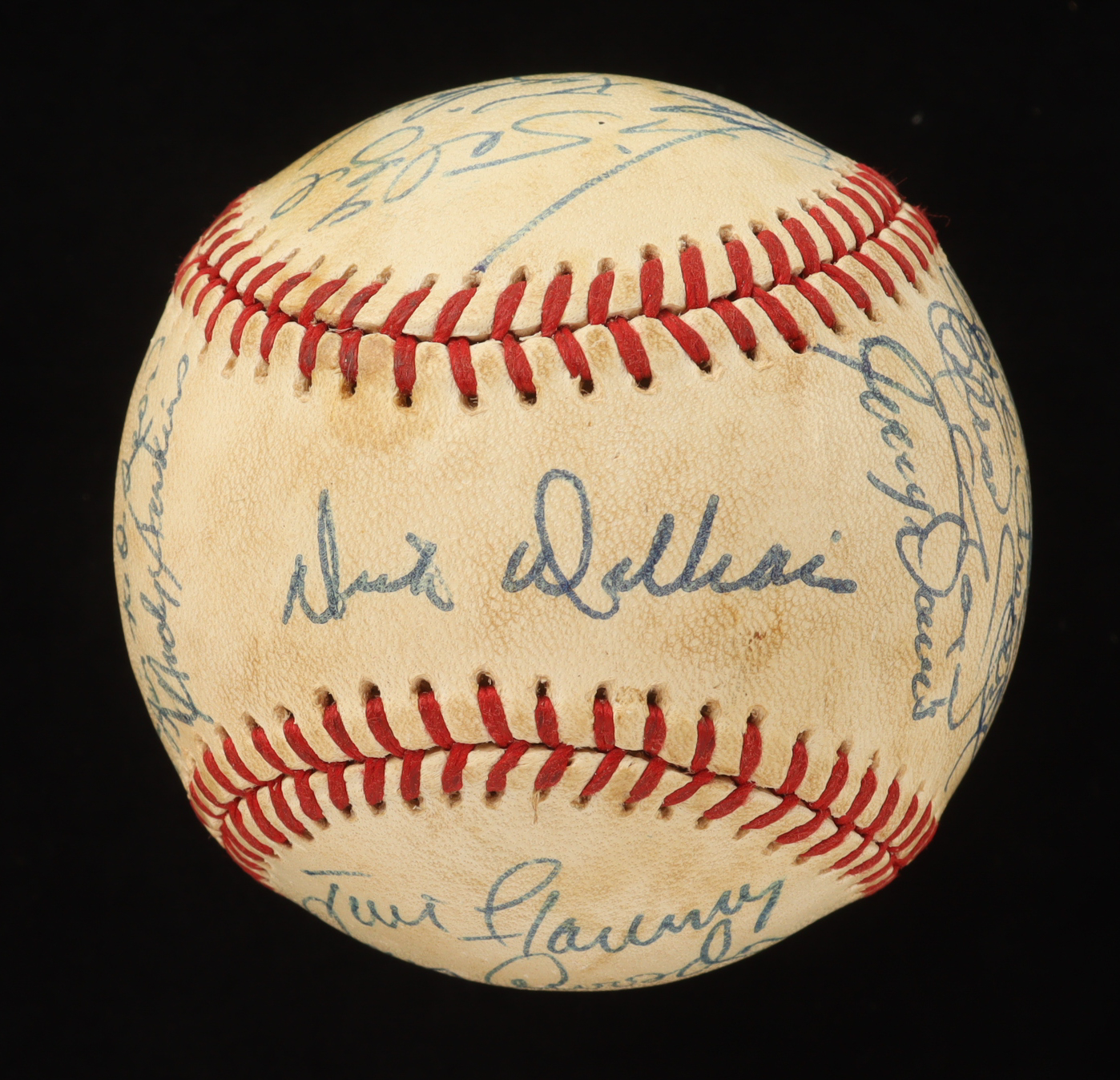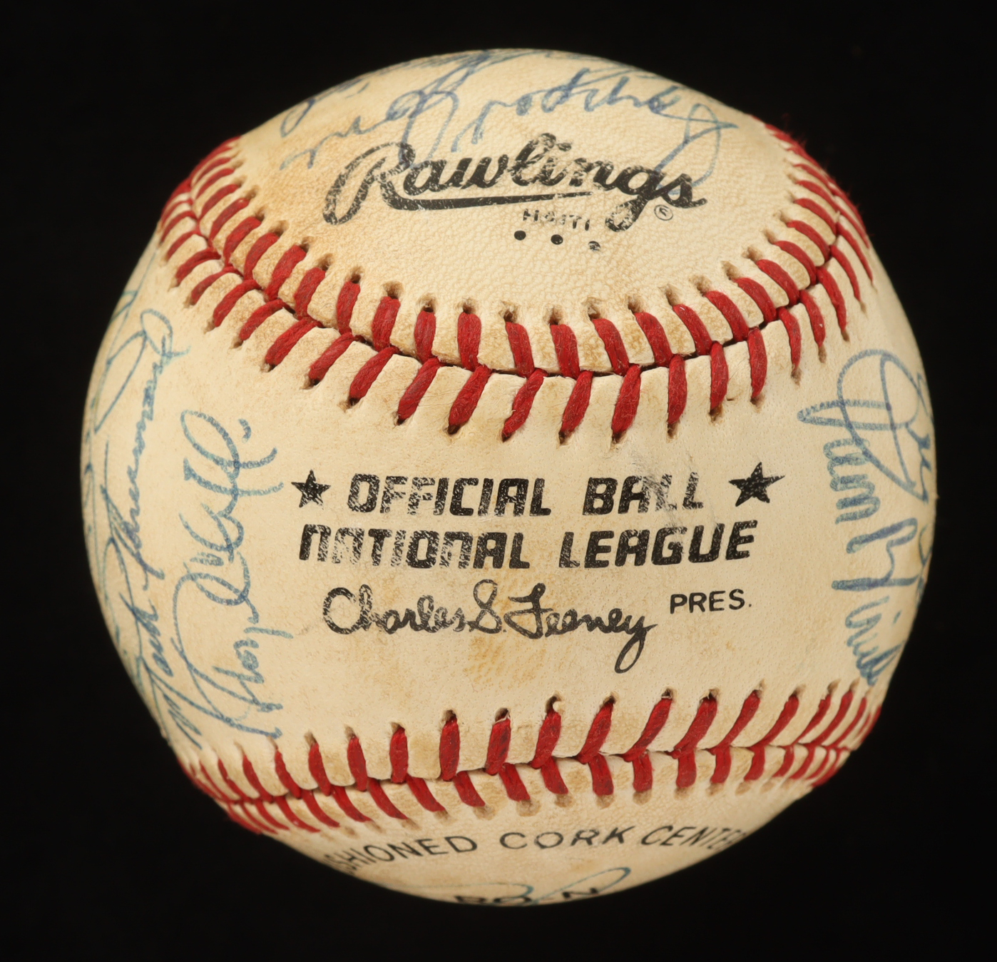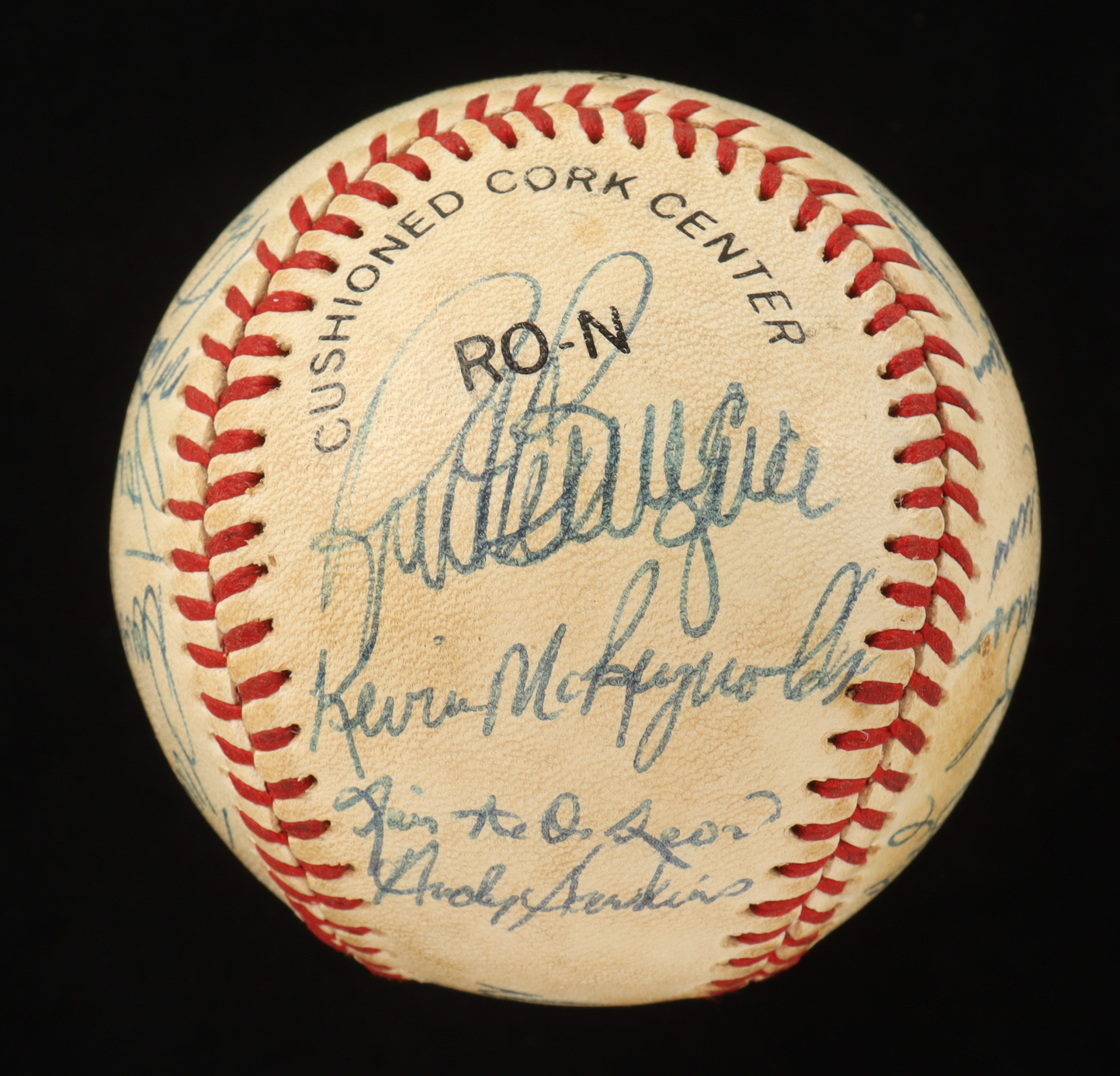 Official National League Baseball. Team-signed by (21) 1983 San Diego Padres including Tony Gwynn, Luis Salazar, Gene Richards, Juan Bonilla, Kevin McReynolds, Kurt Bevacqua, Ruppert Jones, Eric Show and (13) others. Please note, the baseball is naturally toned, the some signatures are fading and the Dick Williams signature has been deemed inconclusive.