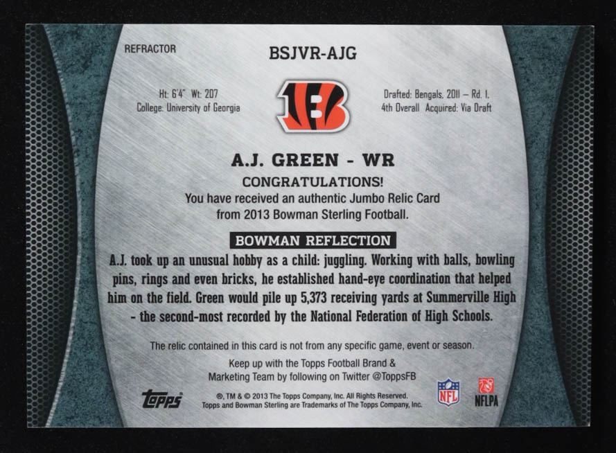 AJ Green 2013 Bowman Sterling Relics Prism Refractors #BSJVRAJG #11/15