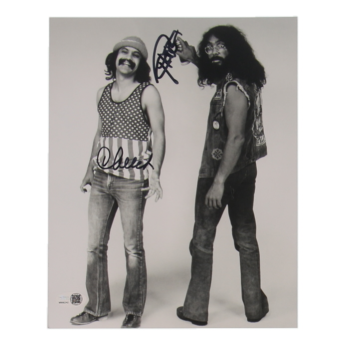 Photo measures 8" x 10" in size and has been hand-signed by Tommy Chong and Cheech Marin.