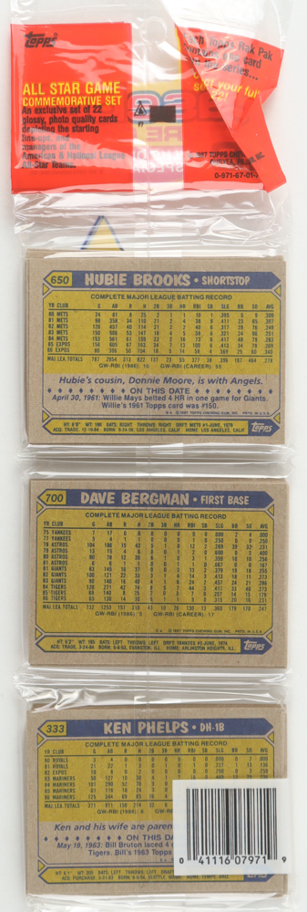 1987 Topps Baseball Picture Cards Rack Pack with (49) Cards