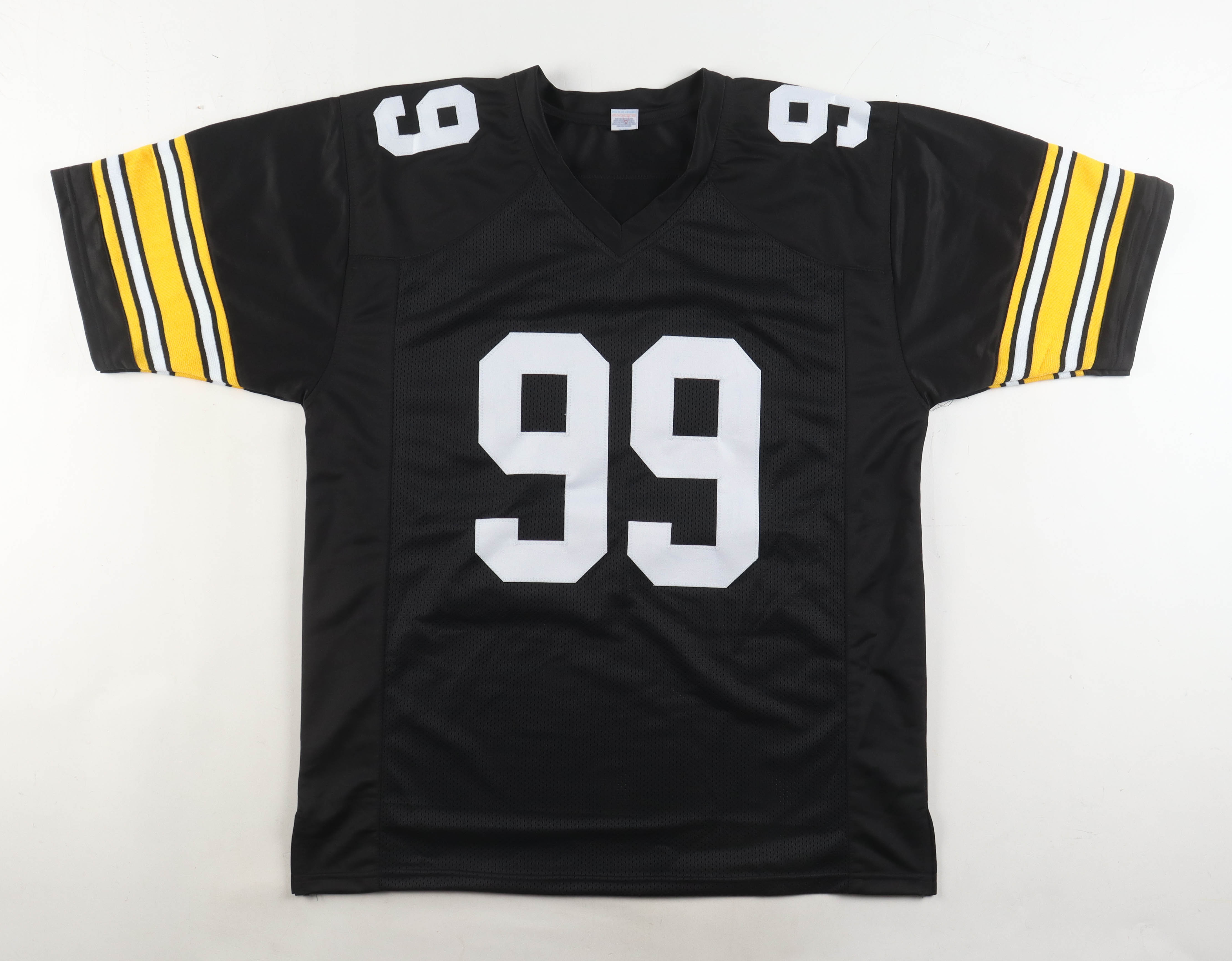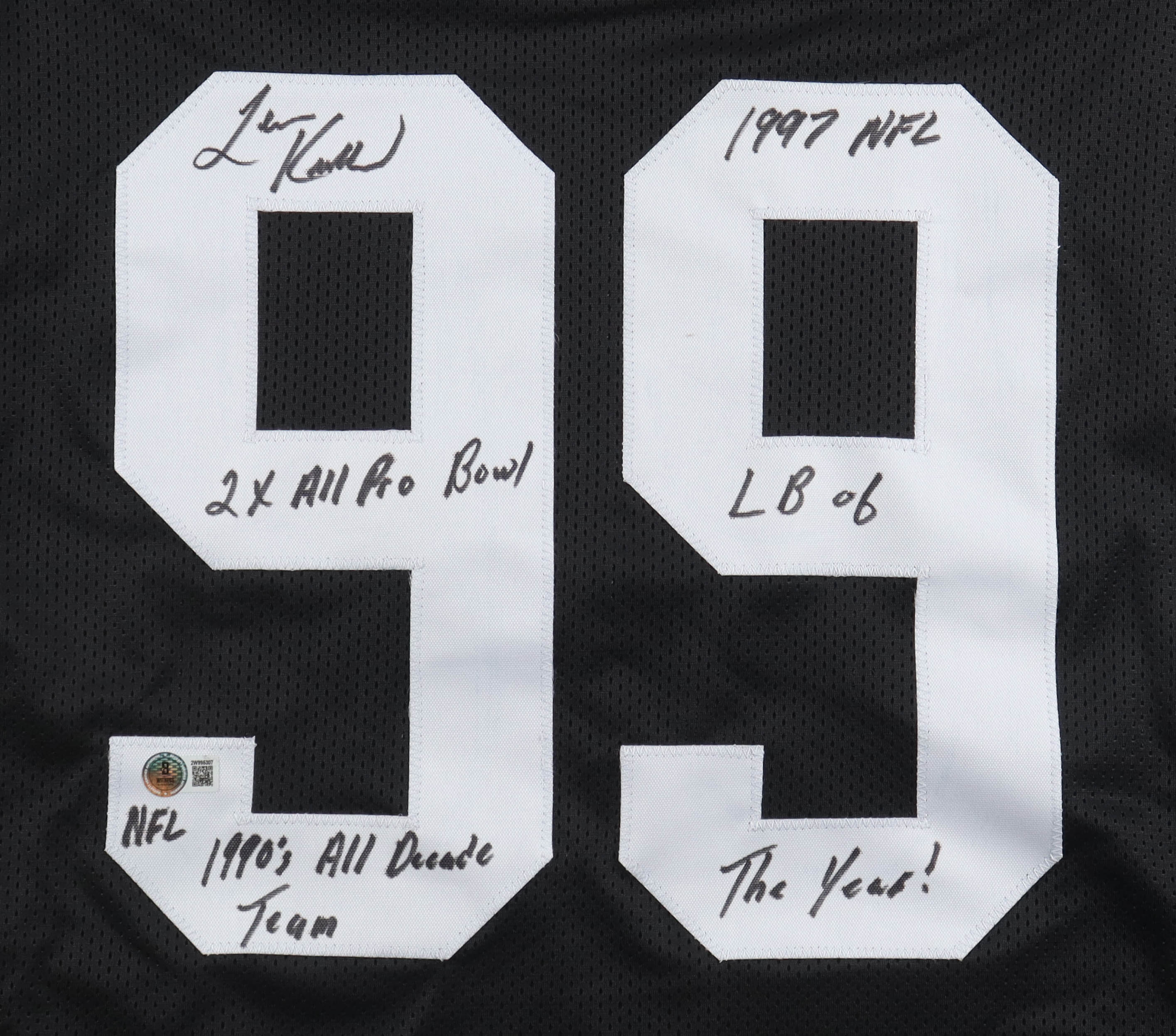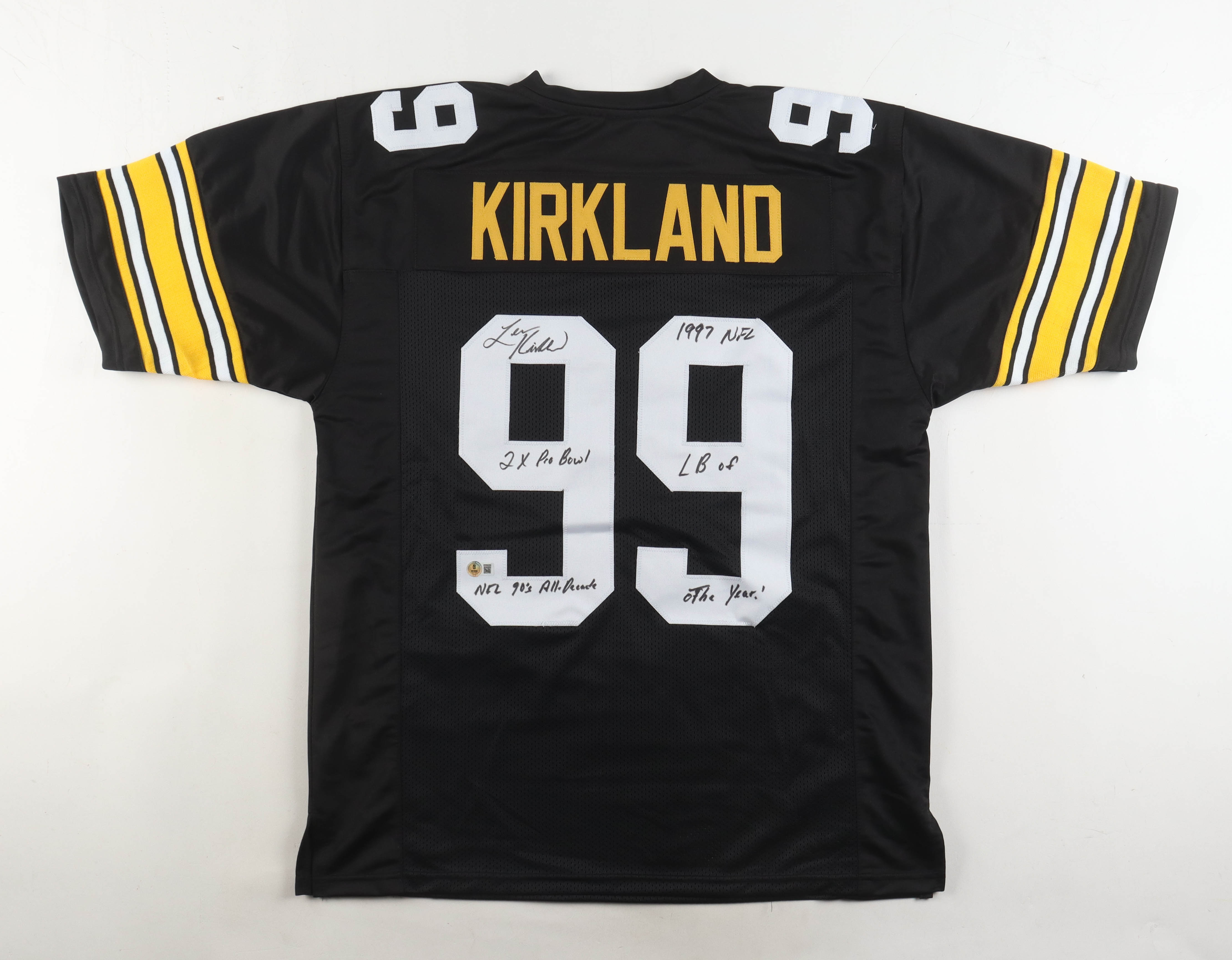 Custom football jersey. Everything sewn on, size XL. Hand-signed by Levon Kirkland. Please note, glue is visible through the reverse number. See the photos regarding the condition of the item.