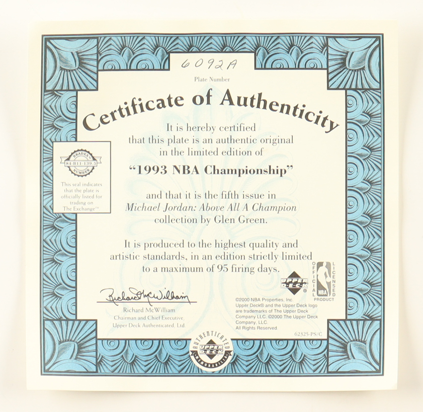 Michael Jordan 2000 Upper Deck LE "1993 NBA Championship" Ceramic Plate