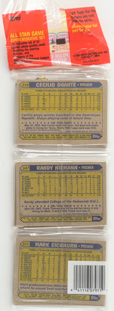 1987 Topps Baseball Picture Cards Rack Pack with (49) Cards