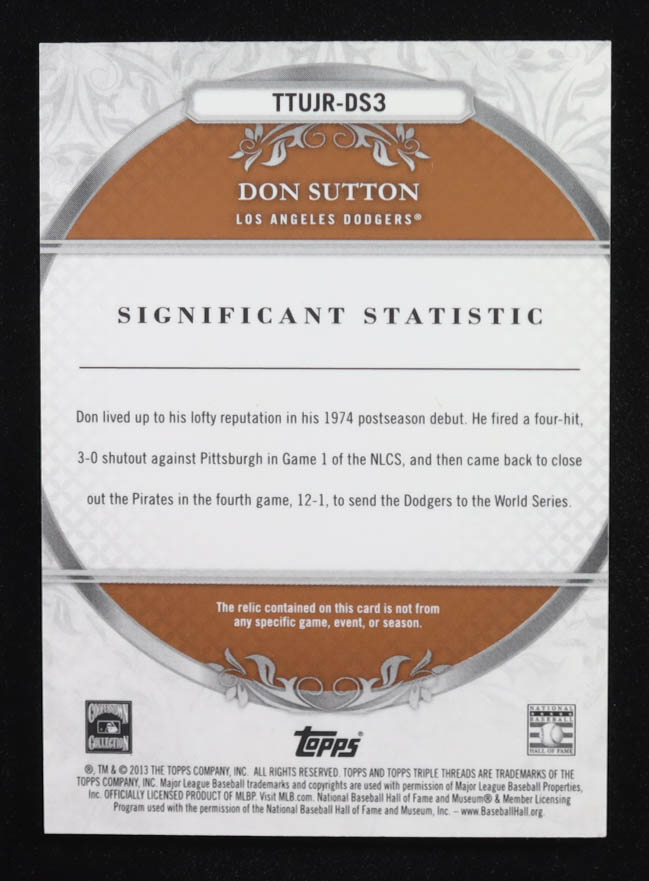 Don Sutton 2013 Topps Triple Threads Unity Relics Sepia #DS3 #8/27