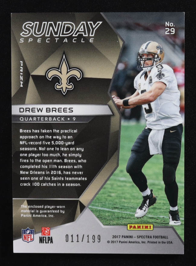 Drew Brees 2017 Panini Spectra Sunday Spectacle Jerseys #29 #11/199